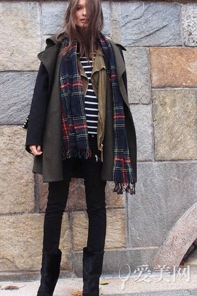 格紋圖案是學(xué)院派的代表,也許略寬的格紋圖案更能壓得住場(chǎng),比碎的小格紋看上去要大氣很多,和風(fēng)衣搭配也很有英倫風(fēng)。 你也可以用一條圍巾為全身的色彩保持平衡,紅白黑相間的圍巾巧妙呼應(yīng)了黑色連衣裙和紅色褲襪。 紅配綠也能搭配出彩哦,墨綠色大衣搭配酒紅色針織圍巾低調(diào)而具有歐美范。 簡(jiǎn)約而優(yōu)雅范get。